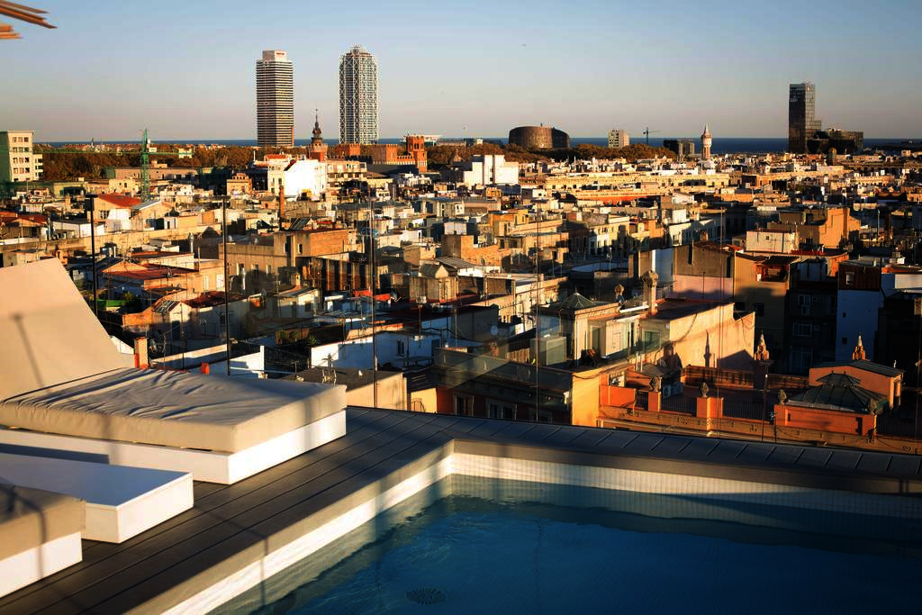 Yurbban Trafalgar Hotel features a rooftop terrace with a pool providing 360 degree panoramic views of Barcelona. The hotel is located just 350 yards from Urquinaona Metro Station.