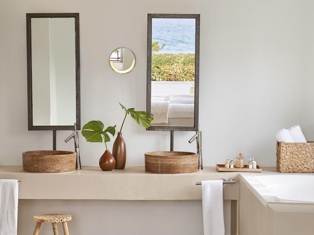 The rooms, suites, villas and bungalows of Grecotel Amirandes are fitted with floor-to-ceiling windows, soft colours and designer furniture. Each is equipped with air conditioning, safe, flat-screen TV and mini bar. The en-suite bathrooms come with a bathtub, free toiletries, slippers and bathrobes. Some units offer private pools.