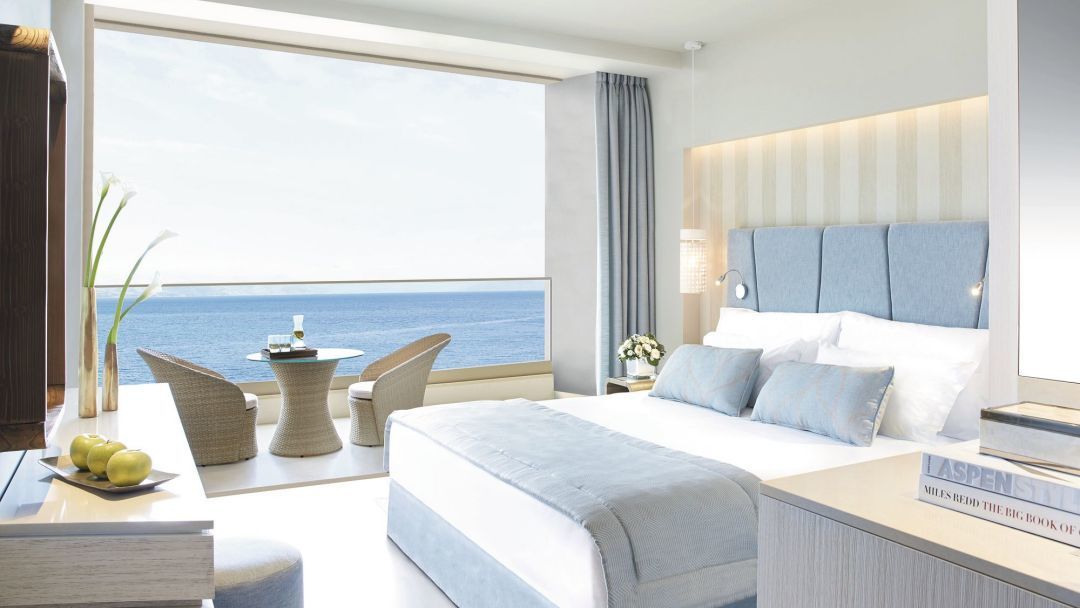 Ikos Dassia rooms are elegantly decorated and open out to a balcony. Each comes with air conditioning, a satellite TV and a fully stocked mini bar with branded spirits.
