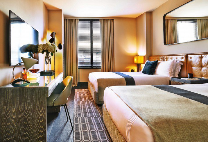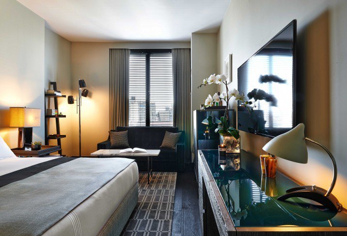 The bar and restaurant of Sixty Soho are reason alone to stay here. The front entrance of this contemporary boutique hotel in Soho glows with numerous shelves of backlit glass jars of orchids. Its seasonal rooftop bar Above Sixty Soho, is the talk of the town and definitely the place to be during the summer months.