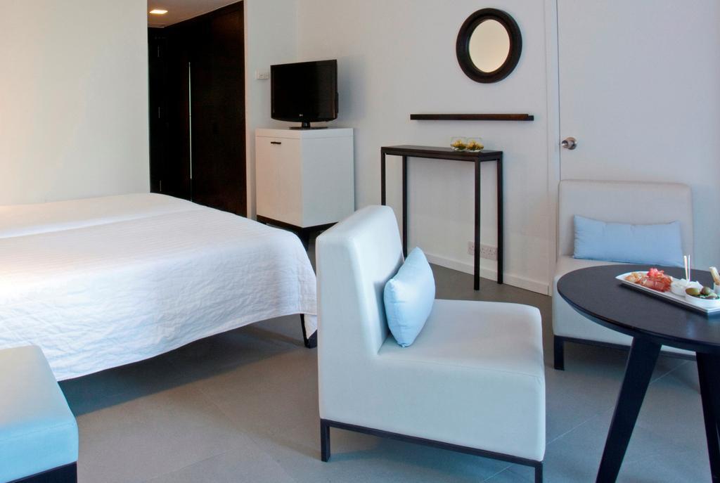 Almyra’s air-conditioned rooms are spacious and come with either floor-to-ceiling windows, balconies or terraces overlooking the garden or the Mediterranean Sea. The rooms have satellite TV, a minibar and safe.